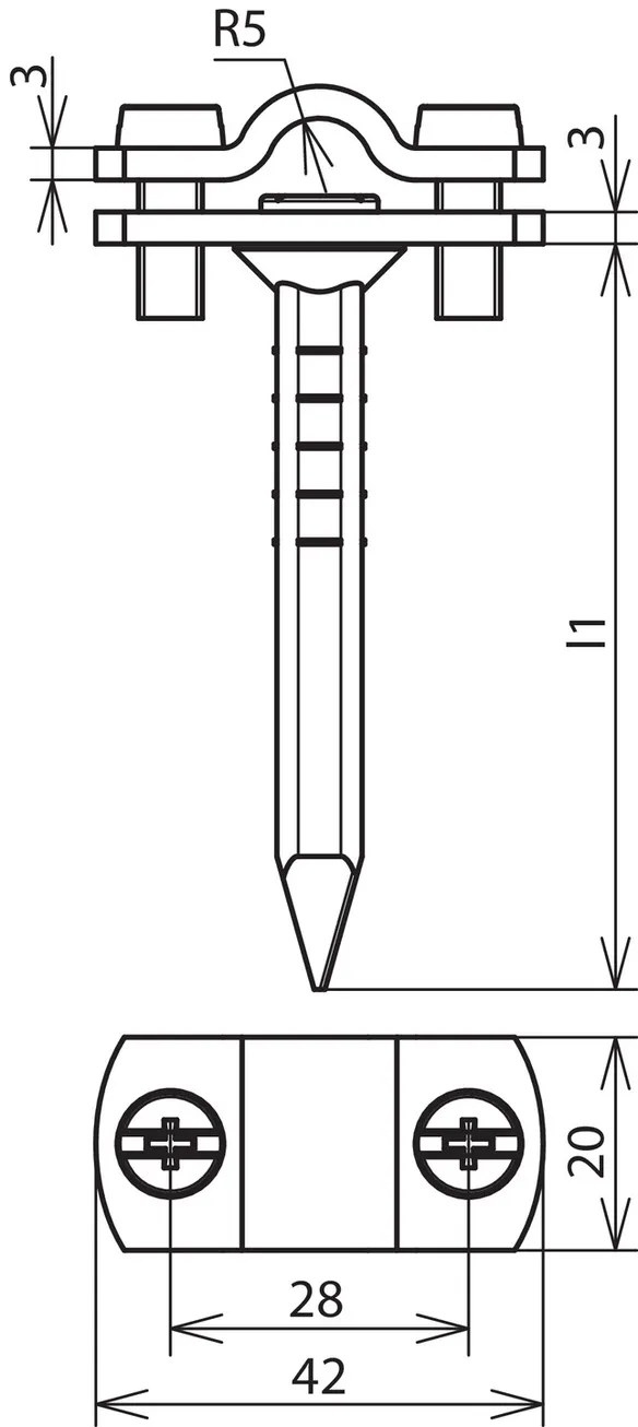 | Fixing (l1) | square pin 150 mm |