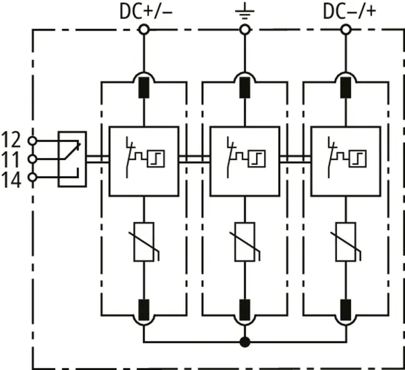 | Znamionowy prąd wyładowczy (8/20 µs) [(DC+/DC-) --> PE] (In ) | 15 kA |