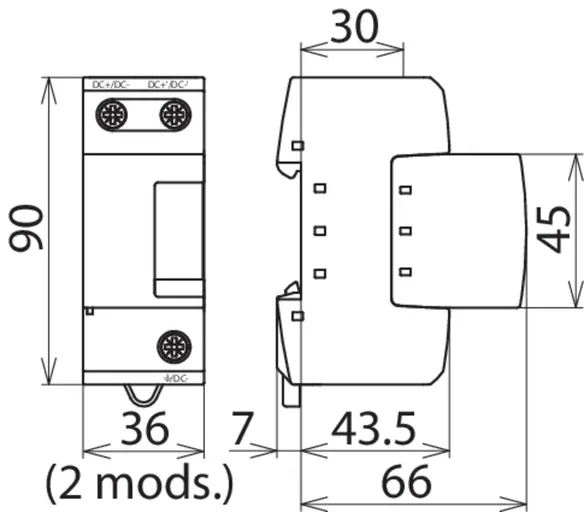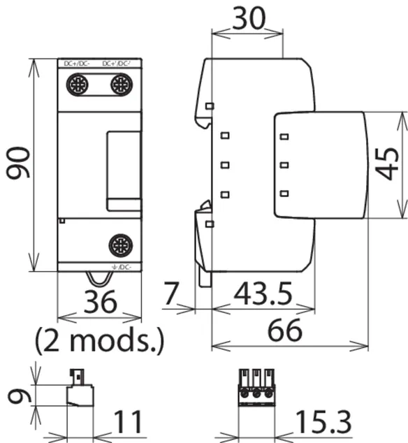 | Napięciowy poziom ochrony (DC+/DC- -> DC-/DC+) / (DC-/DC+ -> 9) (UP ) | ≤ 1,5 / ≤ 1,5 kV |