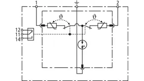 - Dwubiegunowy ogranicznik przepięć składający się z podstawy i wymiennego modułu ochronnego