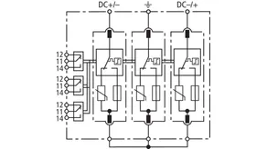 - Gotowa do podłączenia, modułowa, kompletna jednostka do instalacji fotowoltaicznych do 1500 V, składająca się z podstawy i wymiennych modułów ochronnych