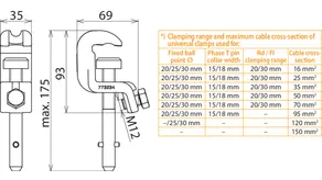 | Do kulowych punktów mocowania o Ø | 20 / 25 mm |
