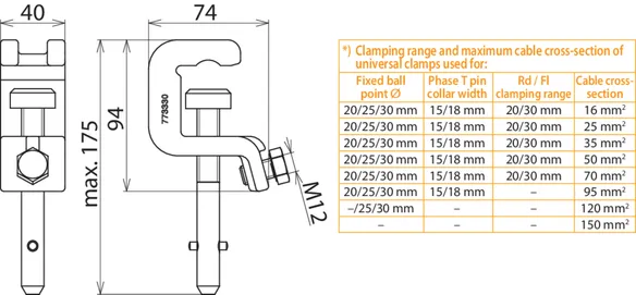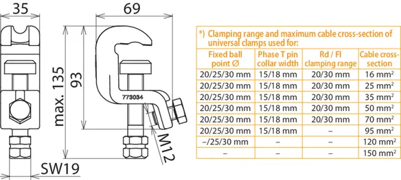 | Do przewodów Cu o przekroju | 16 ... 150 mm2 |