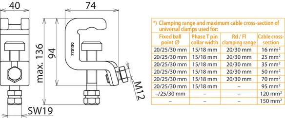 | Zakres zacisku drut / płaskownik | 20 mm |