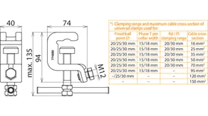 - Do przyłączania po stronie uziemienia do kulowych punktów mocowania, sworzni T-kształtnych, drutów i płaskowników, łączników i profili płaskich